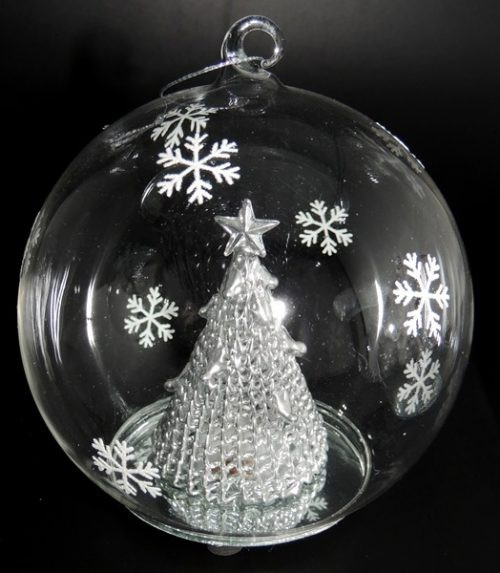- Lightup Glass Ball with Silver Tree - 12cm
